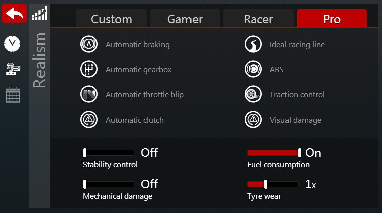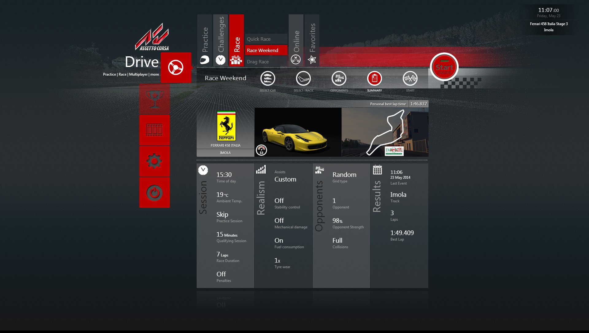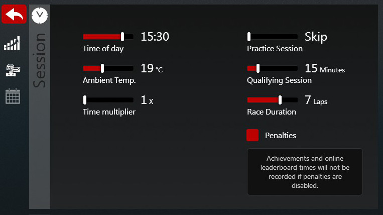 SUMMARYの下の欄から選択できます。 セッション設定 リアリズム設定 ライバル車種設定